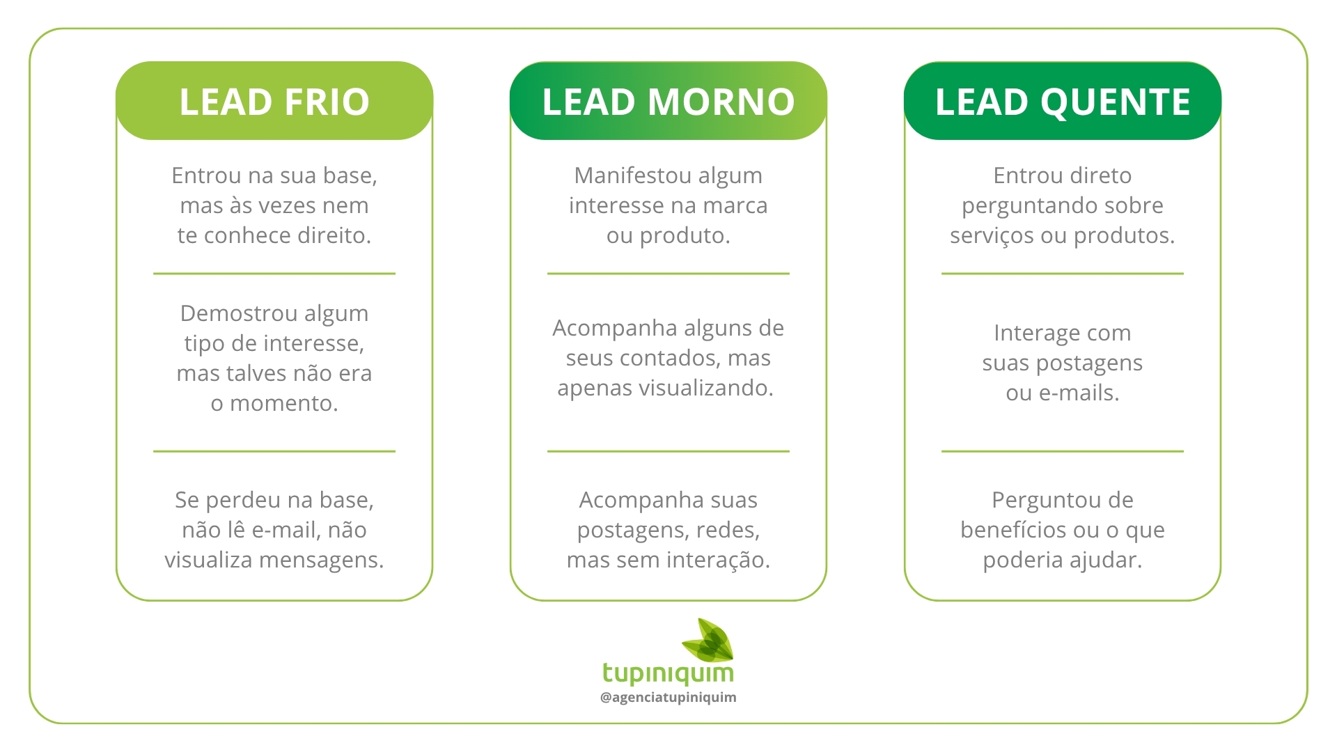 - Lead frio é o contato captado que nunca chegou a interagir de forma significativa. Ou seja, um lead que baixou seu e-book há 3 meses e nunca mais abriu um e-mail → lead frio.