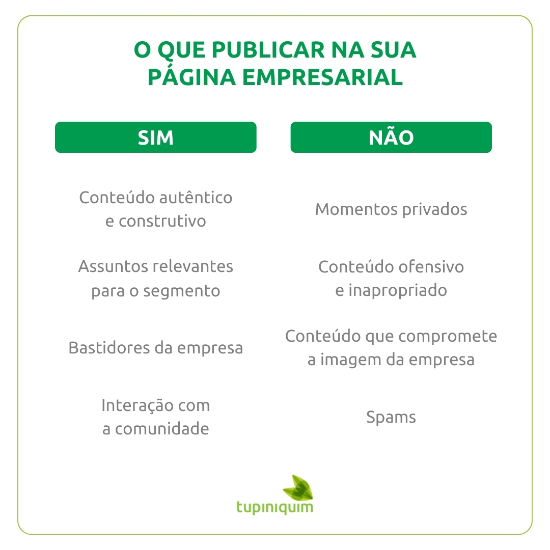 - Na página da empresa, destaque diferenciais competitivos e adicione publicações constantes.